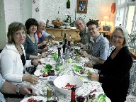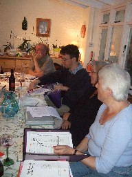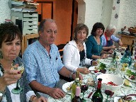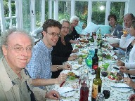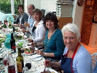 After Two Years we met up for a late afternoon social in the summer 0f 2009. Courtesy of Cleone, we had a barbecue, then drank a lot of wine and beer and finished the evening with some singing. We selected two pieces each and with ten singers that meant twenty pieces. We had had a wonderful time too. Here are some pictures. Eating and drinking on the left, singing on the right.